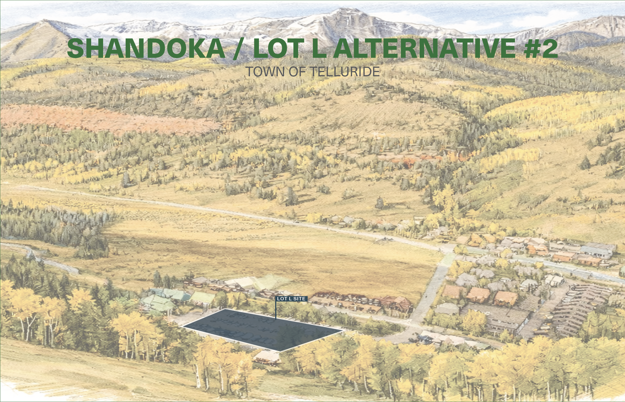 The Town of Telluride is planning improvements for the Shandoka Lot (Lot L), which currently operates as a surface parking lot. The project proposes replacing the existing lot with a structured parking garage that increases parking capacity while introducing housing and community amenities. The effort builds on the Telluride Master Plan, the Southwest Area Conceptual Plan, the Lift 7 Neighborhood Planning effort, and Town Council’s 2026 Goals & Objectives, which identify this site as an opportunity to provide parking, housing, and neighborhood services.